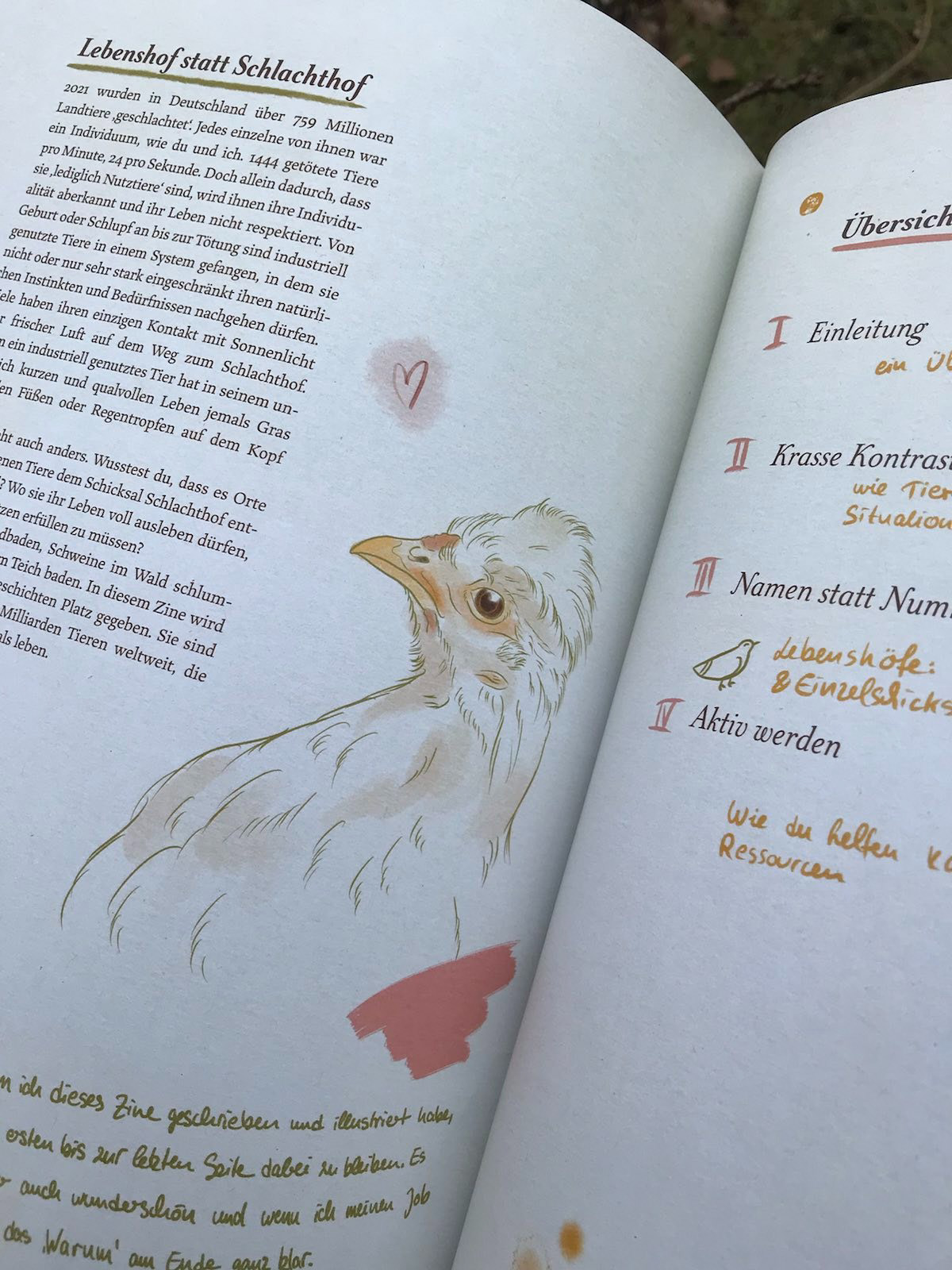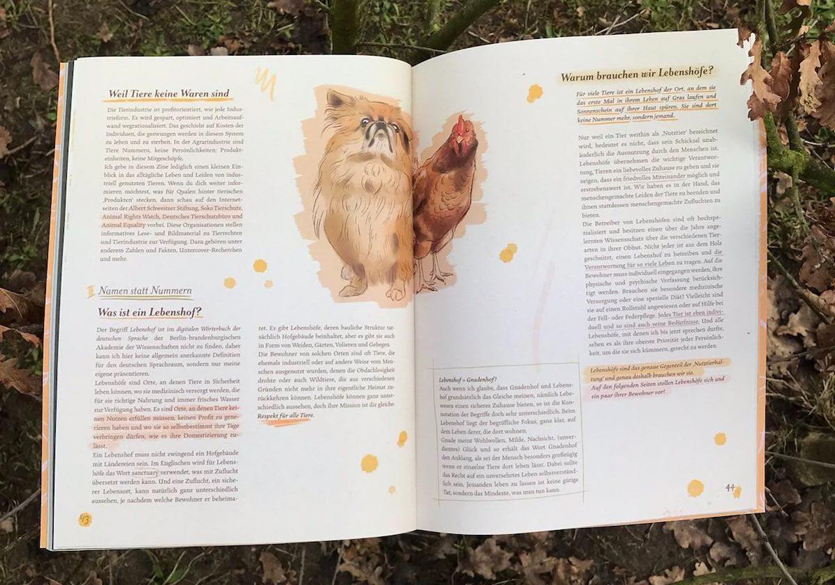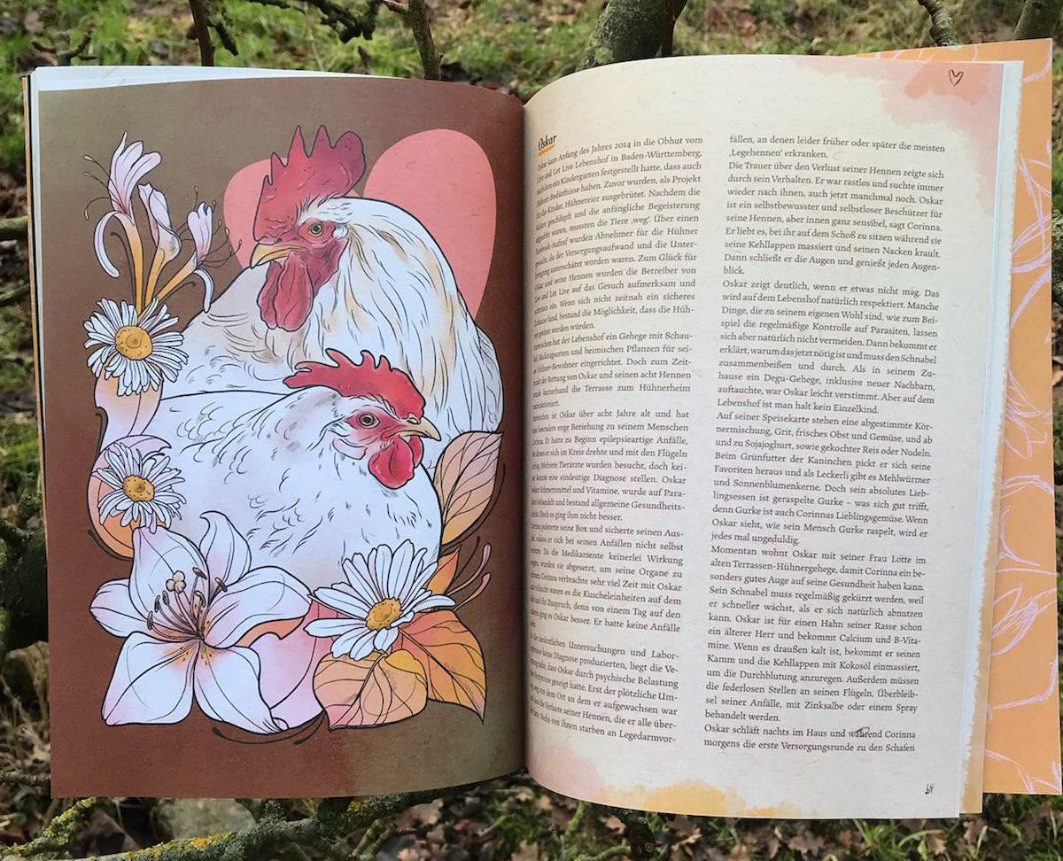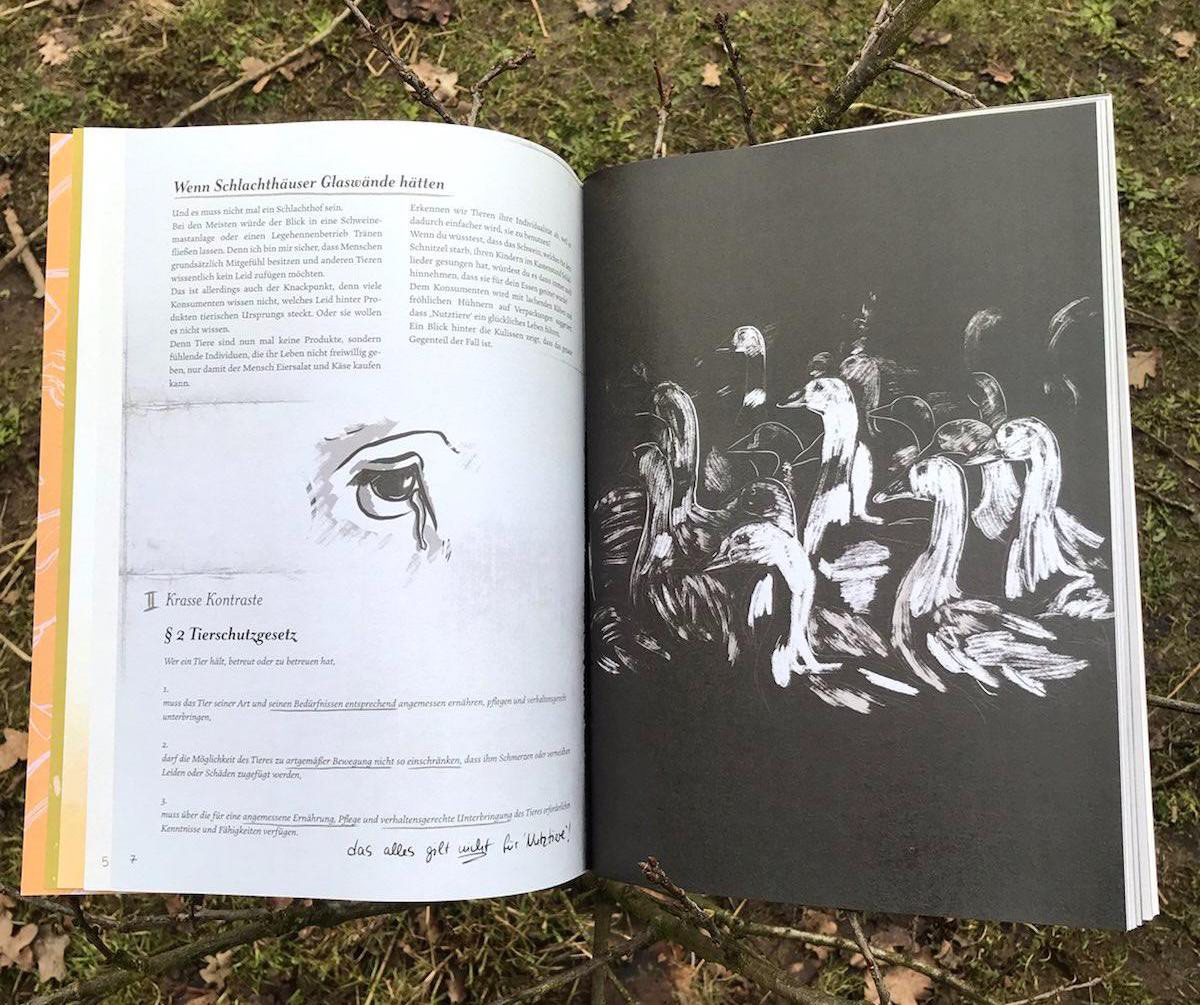 For my bachelor thesis I illustrated and wrote a zine about "farmed" animals. I focused on the contrast between their existence in the animal industry and the life they lead in sanctuaries.