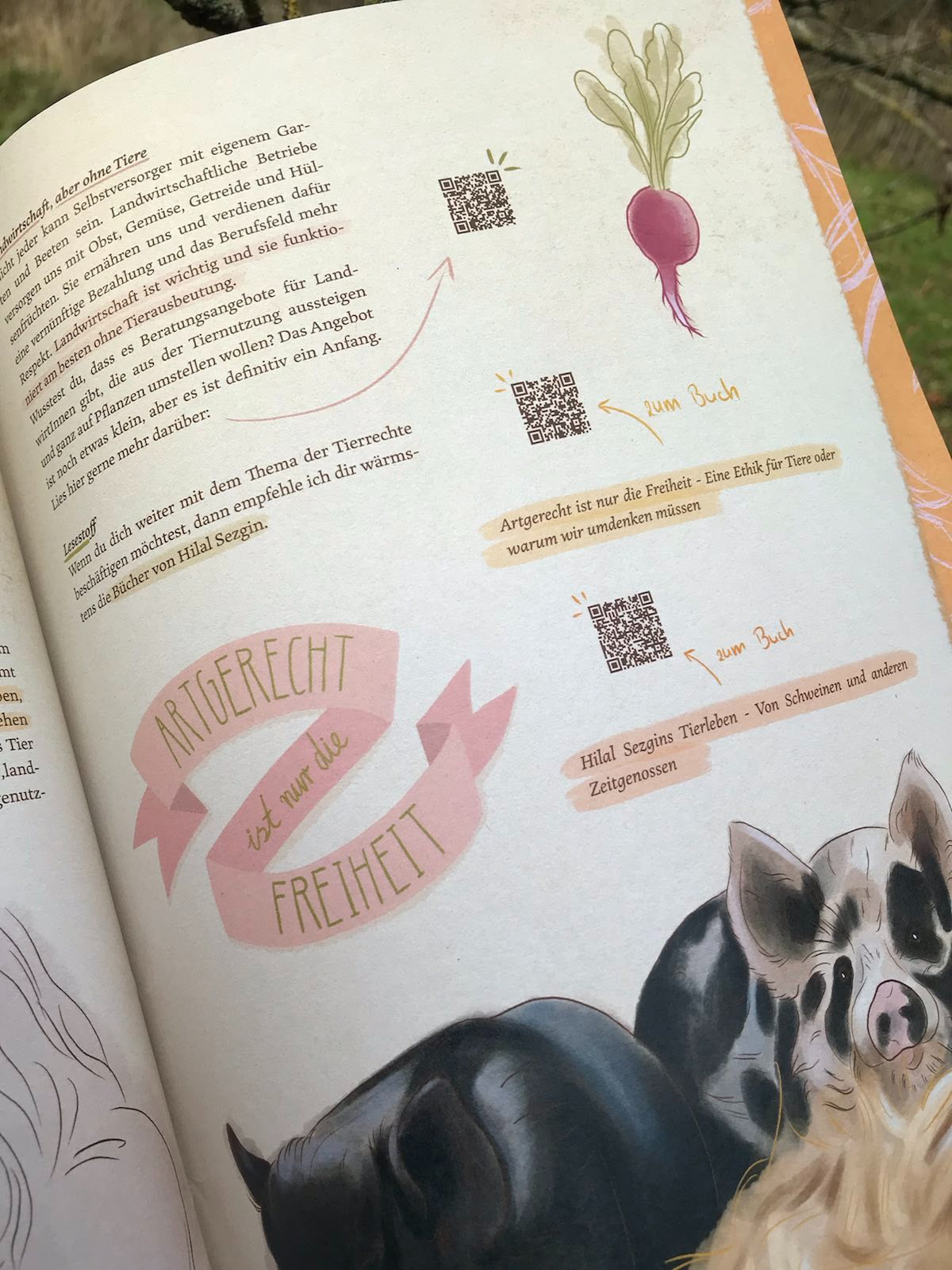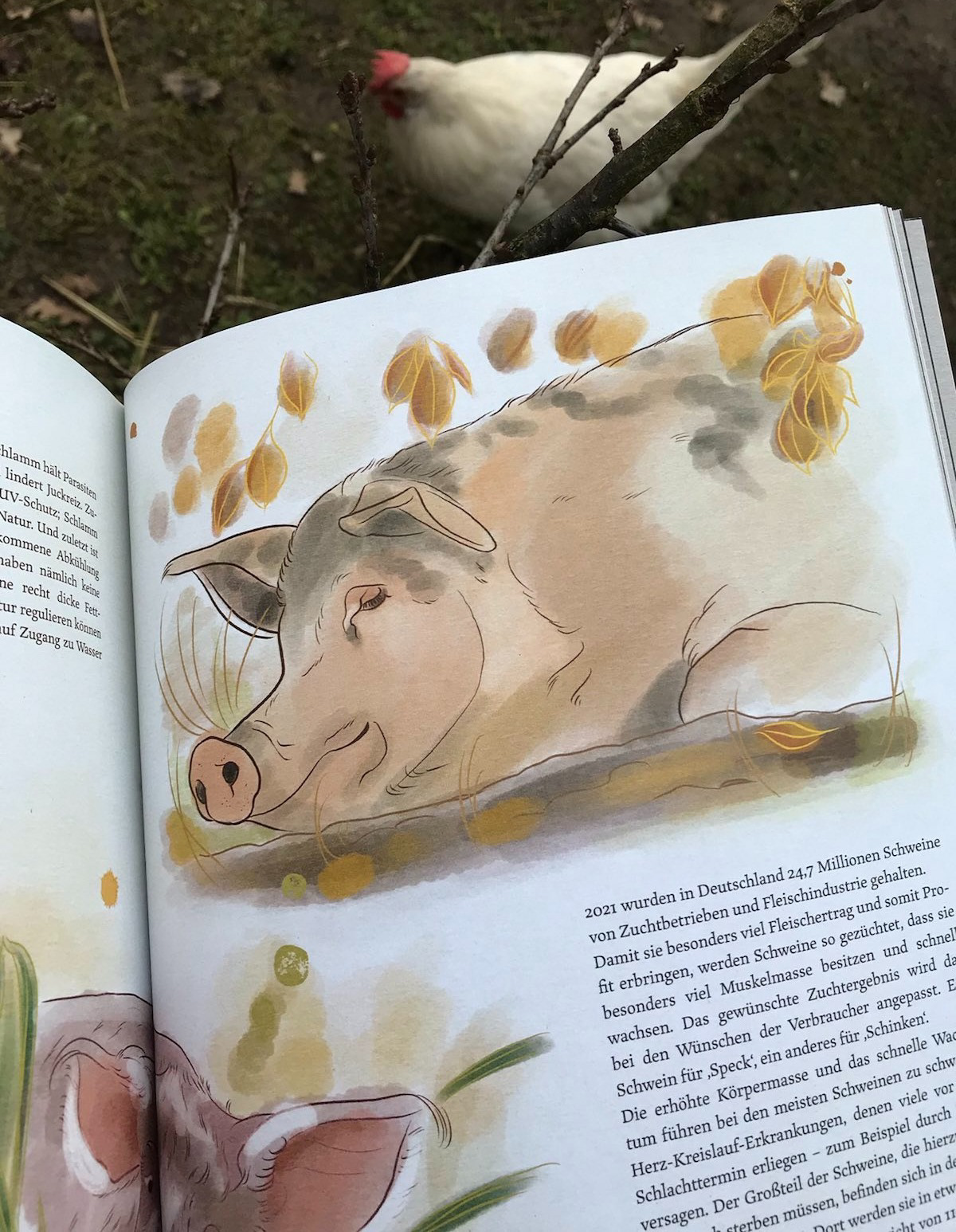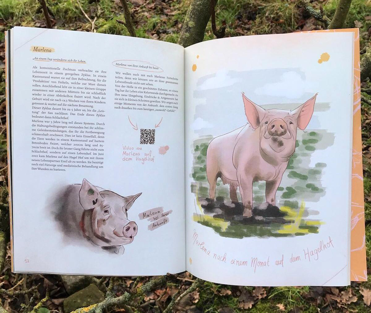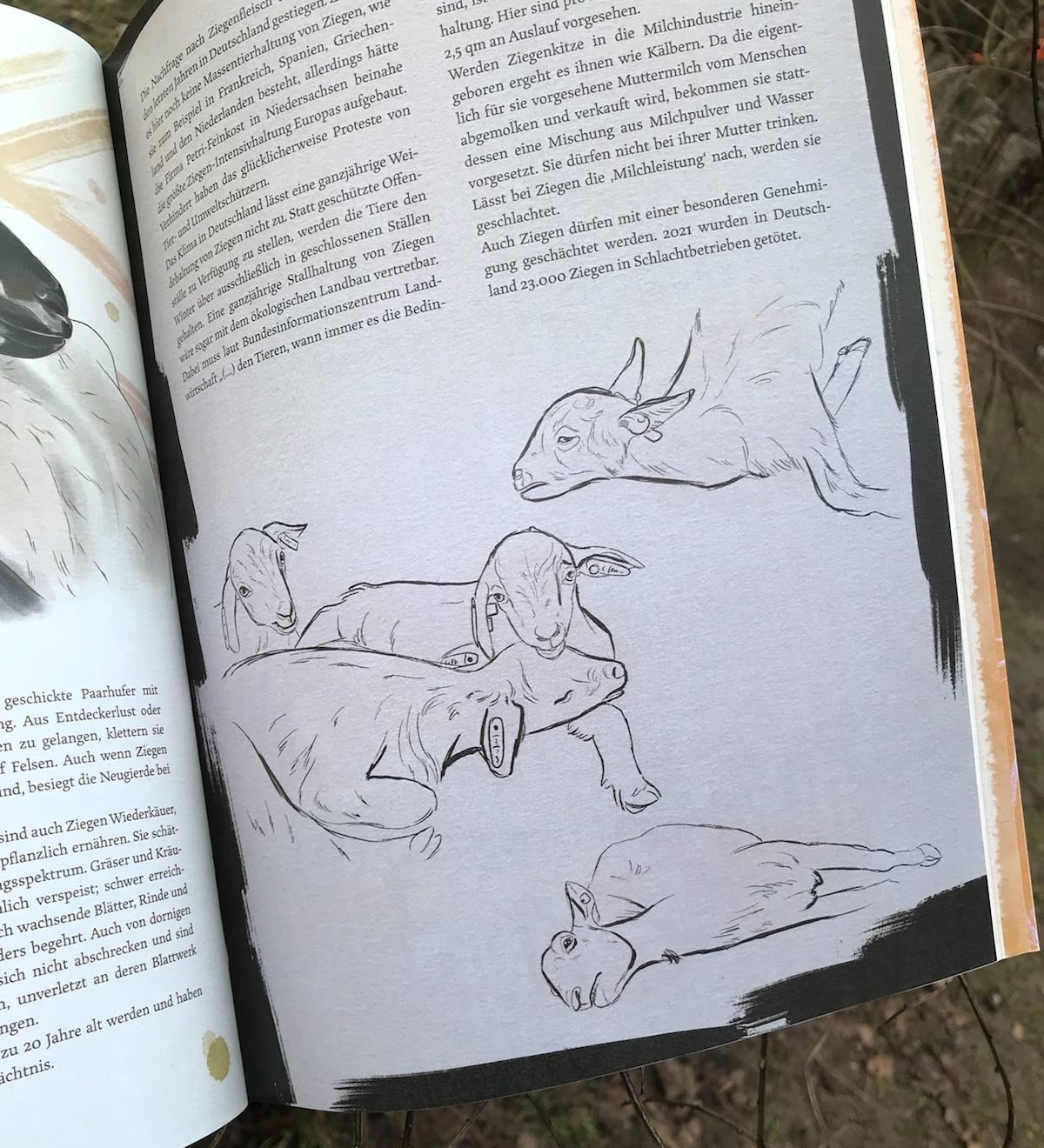 For my bachelor thesis I illustrated and wrote a zine about "farmed" animals. I focused on the contrast between their existence in the animal industry and the life they lead in sanctuaries.